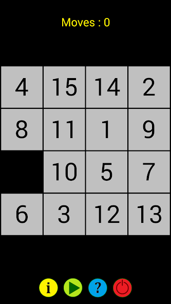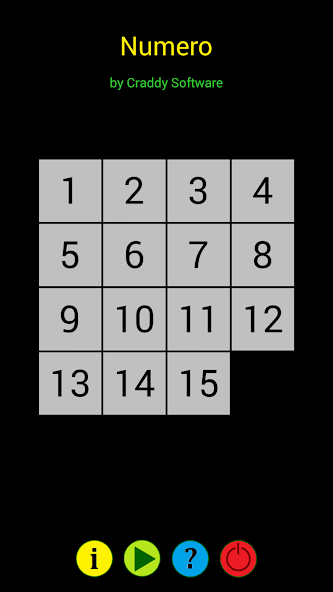 Numero (auch bekannt als 15-Puzzle) ist ein Schiebeduzzle, das aus einem 4x4-Gitter mit nummerierten quadratischen Kacheln in zufälliger Reihenfolge besteht, wobei eine Fliese fehlt.