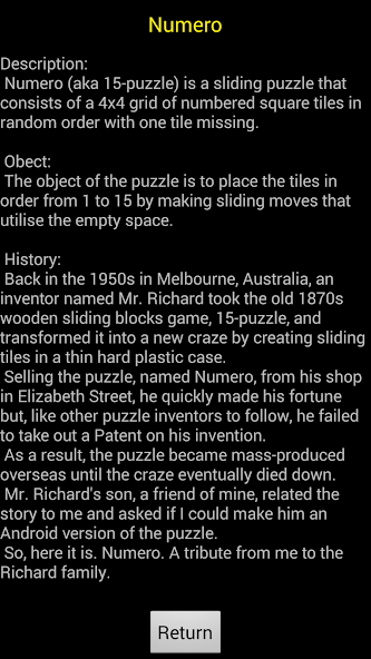 Mr. Richards Sohn erzählte mir die Geschichte und fragte, ob ich ihn zu einer Android -Version des Puzzles machen könne.