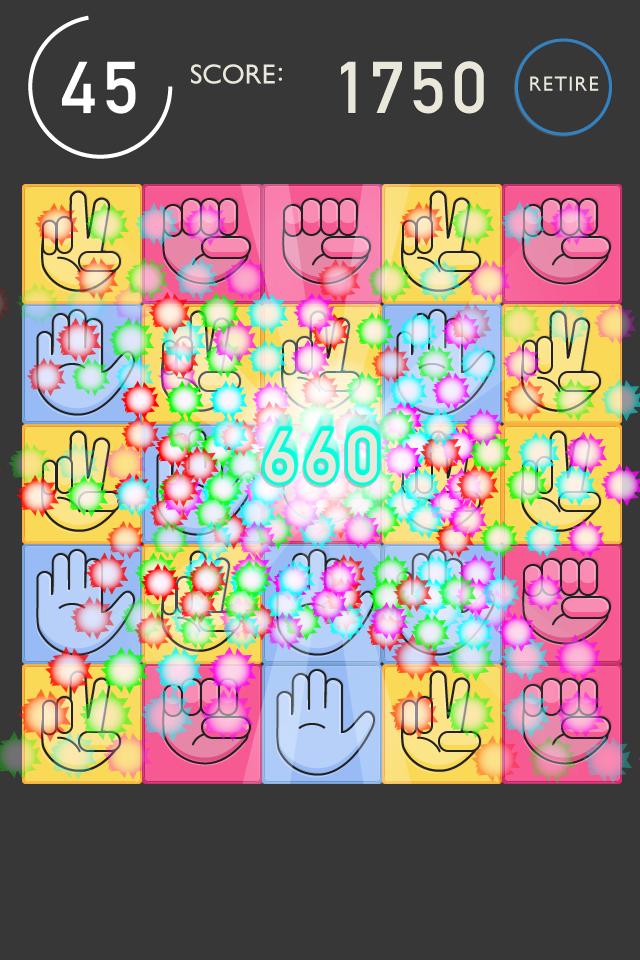 Schließen Sie sich in einem Schlaganfall in der Reihenfolge der Fels-Papier-Sissoren an.