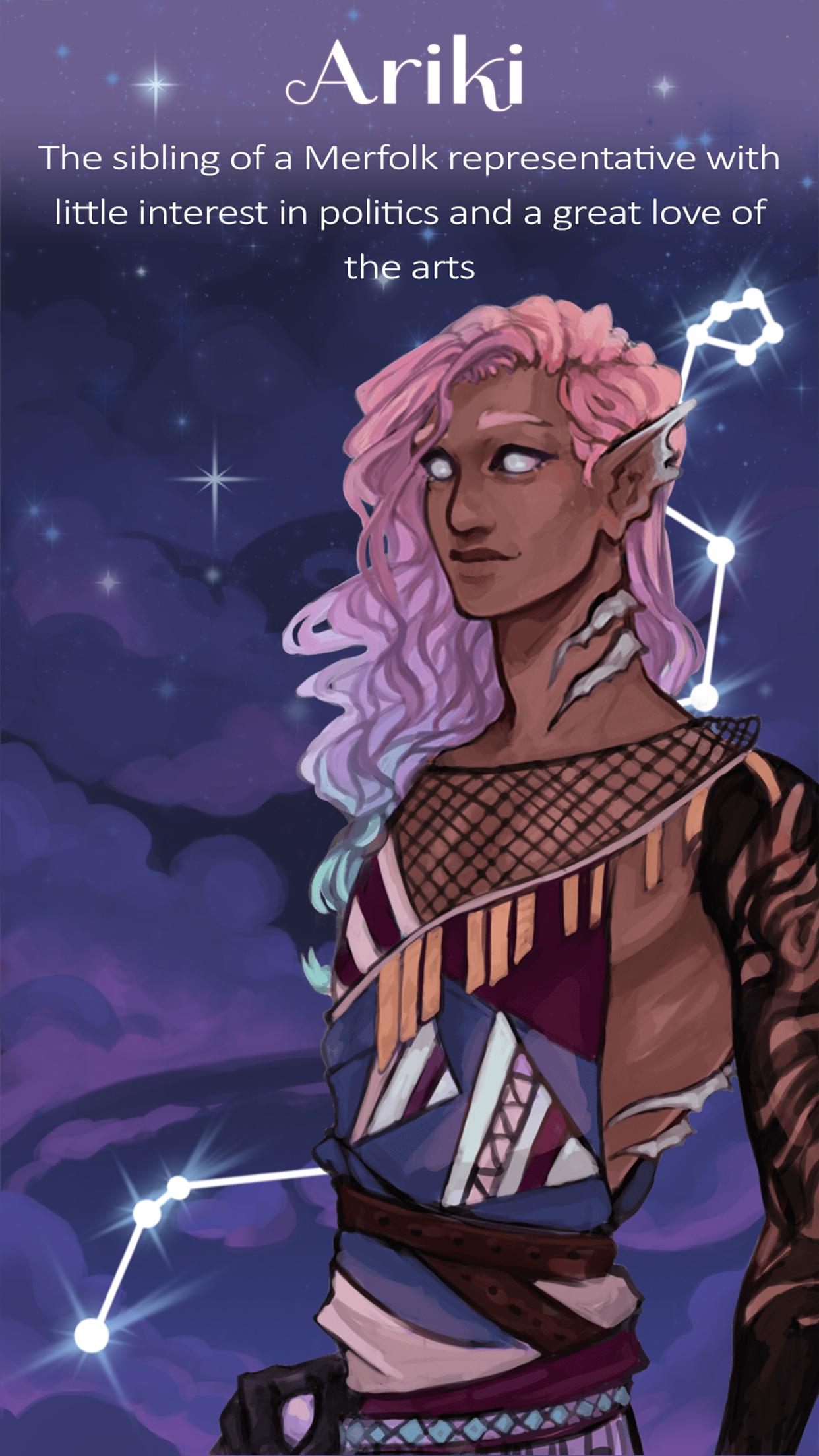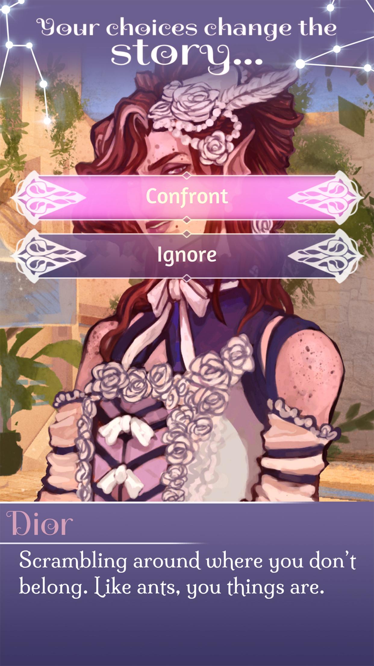 Der Spieler wird in die Schuhe eines der wenigen zugelassenen menschlichen Botschafter (deren Name und Pronomen vom Spieler festgelegt werden können) eintreten, die mit der Aushandlung von Frieden während eines angespannten politischen Gipfels beauftragt werden. Der Spieler ist jedoch mehr als ein Botschafter und ist auch ein Orakel, einer der seltenen Personen, die von den Visionen der Sterne und der sich ständig verändernden Zukunft belastet werden.
