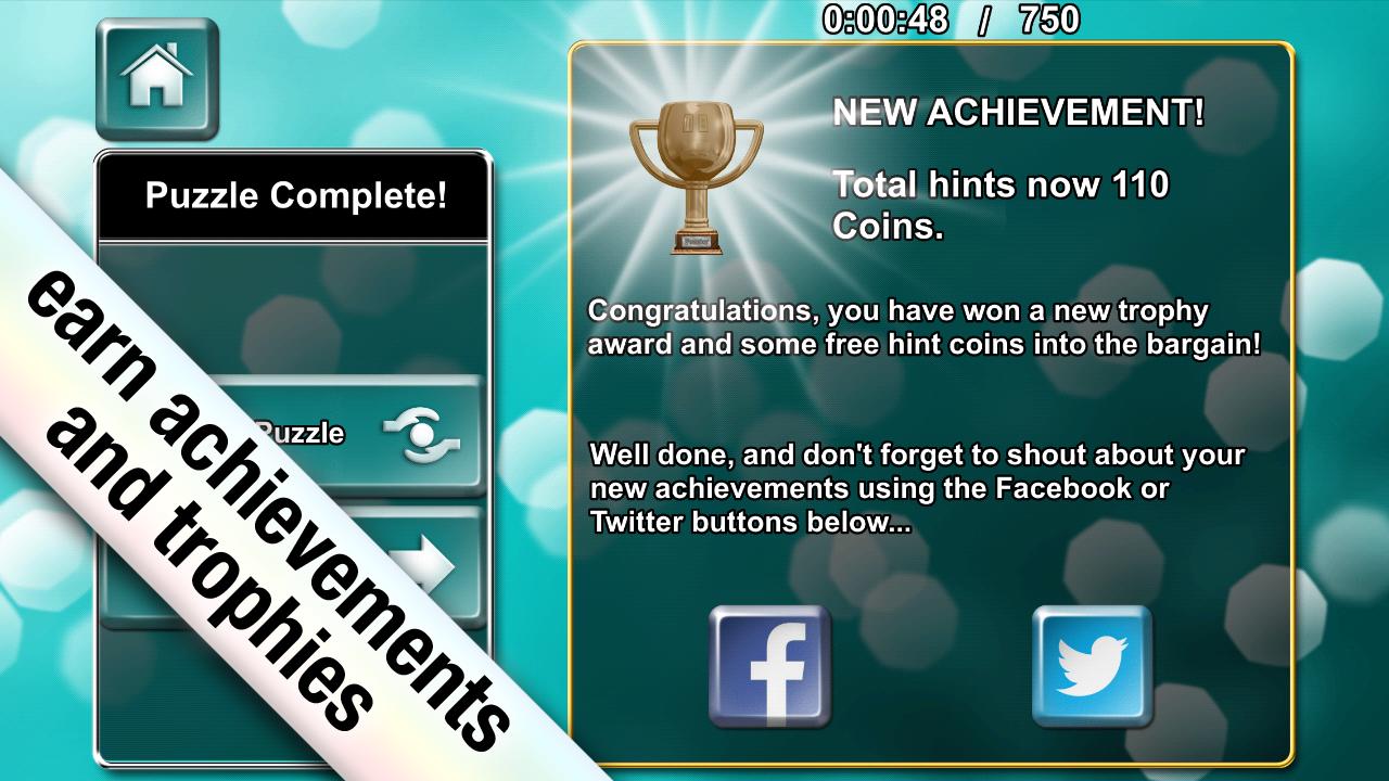 Genießen Sie 12 kostenlose Rätsel verschiedener Boardgrößen und Themen und wählen Sie dann aus einer großen Auswahl an IAP -Packungen jedes Mal neue Rätsel! Mit einer Vielzahl von erstaunlichen Spielfunktionen, wie zum Beispiel die Personalisierung Ihres Spiels, ist diese Wortsuche die für Sie.