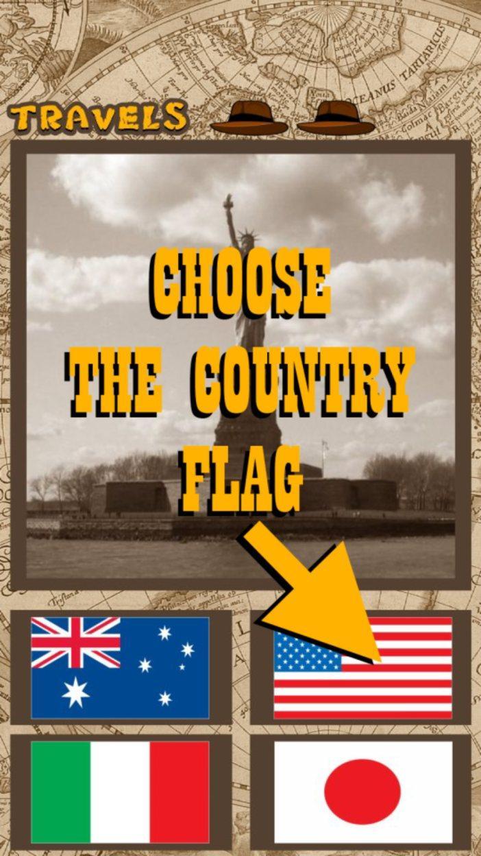 Testen Sie Ihr Wissen. Dein Gedächtnis durchqueren. Länder besuchen. Fahnen lernen. Spielen Sie ein triviales Fotospiel.