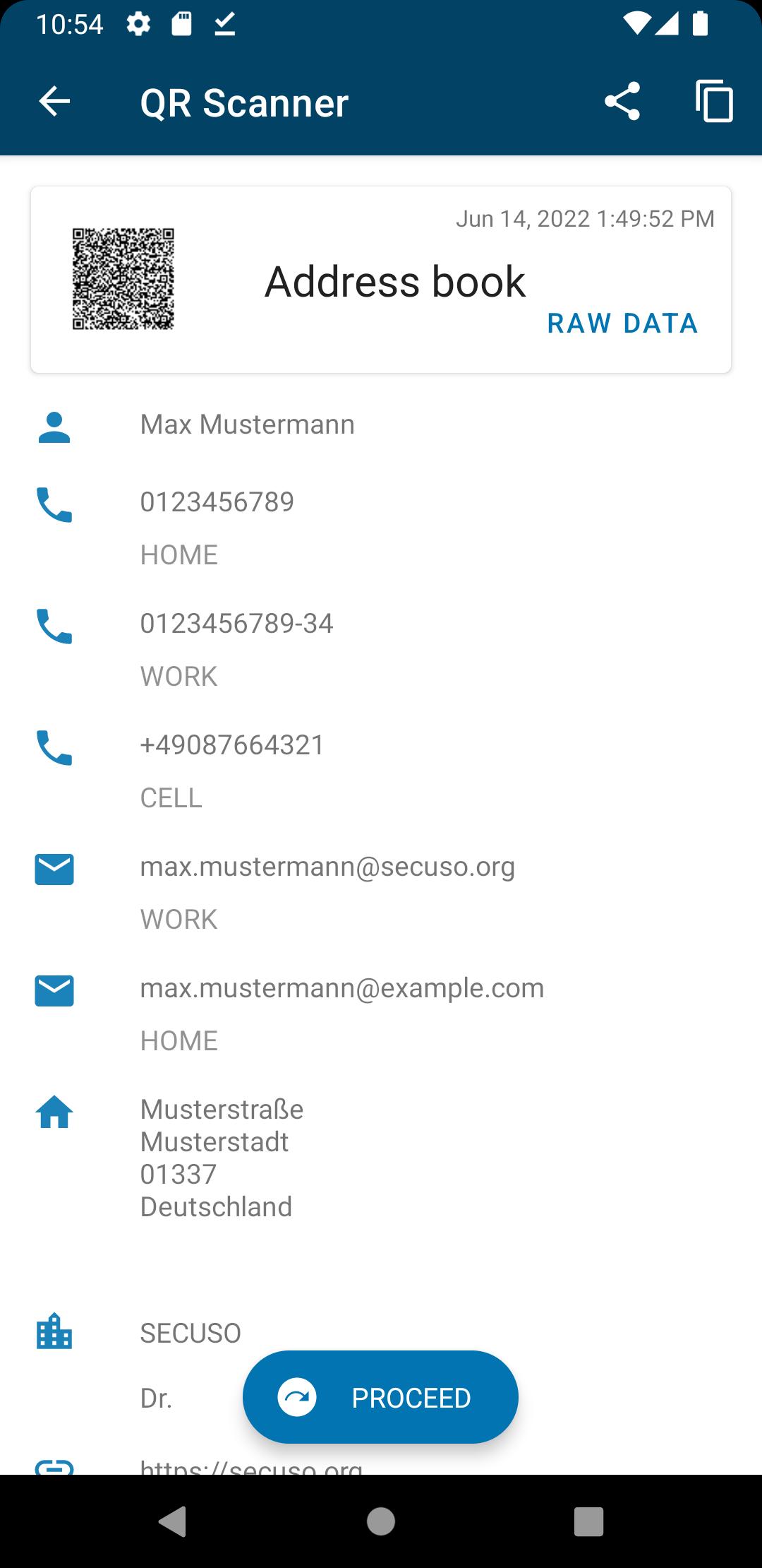 Los códigos QR se vuelven cada vez más importantes. En algunas áreas incluso han reemplazado el código de barras tradicional. Un código QR puede almacenar hasta siete mil caracteres y, por lo tanto, está calificado para contenido más complejo, por ejemplo, VCARDS. Por lo tanto, hoy en día los códigos QR se pueden encontrar hoy en día en casi todos los póster de publicidad y animar al usuario para escanearlo con su teléfono inteligente. Por lo tanto, ya no es necesario tomar una nota escrita a mano, es suficiente escanear el código QR. En consecuencia, ya hay muchas aplicaciones de escáner de código QR disponibles en Google Play Store. Pertenece al grupo de aplicaciones amigables con la privacidad desarrollado por el grupo de investigación Secuso en Technische Universität Darmstadt. Se puede encontrar más información un secuso.org/pfa