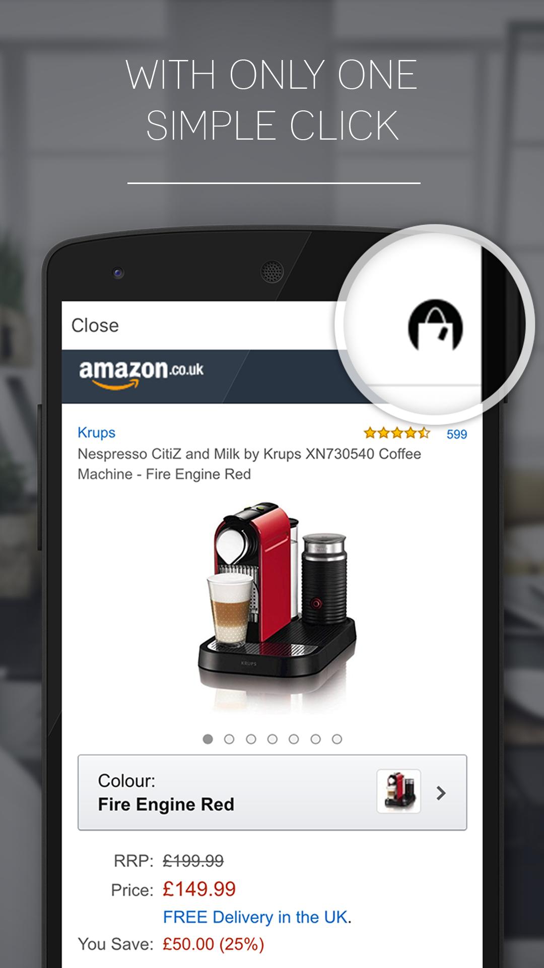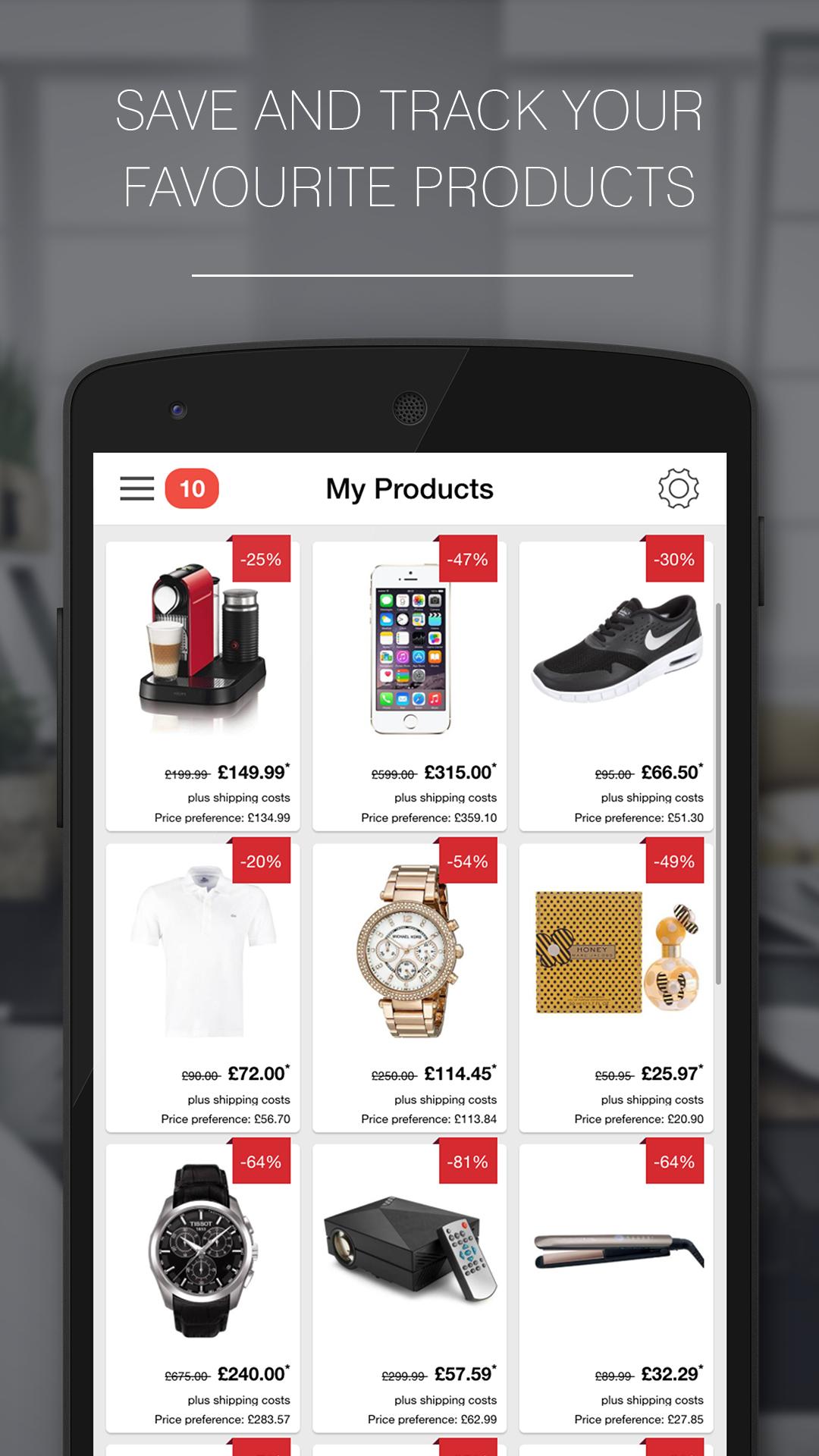 - Rápido y fácil: guarde sus productos favoritos en un solo clic sin interrumpir su navegación, acceda a todos los sitios web de nuestras tiendas de socios dentro de nuestra aplicación