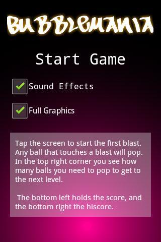 Un juego de reacción en cadena. Toque la pantalla para comenzar una explosión. Cualquier burbuja en la pantalla que toque la explosión explotará y cualquier burbuja que esté cerca de esa nueva explosión explotará ... y así sucesivamente.