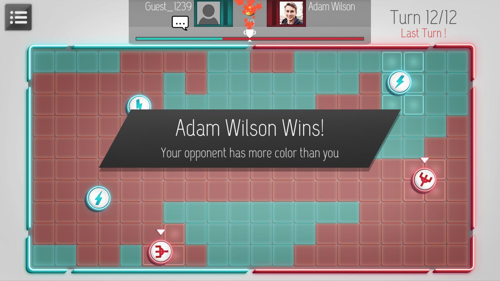 Competir con los partidos 1 vs 1. ¡Trate de vencer a los oponentes con tomar %50 del mapa! Y no dejes que te ocupen.
