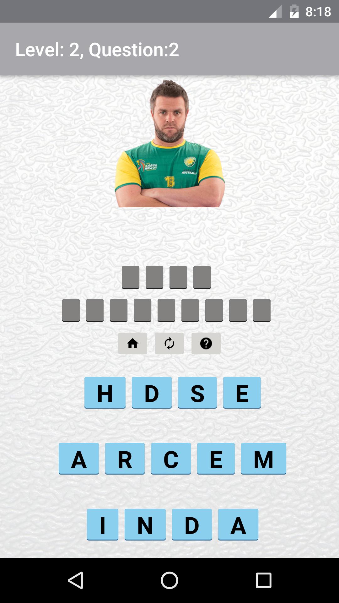 Este es un juego de rompecabezas de Kabaddi de http://www.dividdapps.com, donde necesitas el profesional adivinando el profesional adivinando los nombres de jugadores de la Copa Mundial de Proka y Kabaddi 2016 mirando sus imágenes.