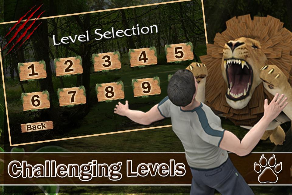 A diferencia de otros juegos de caza de la jungla, su nivel de dificultad aumentará a medida que avance en el juego. El número de leones seguirá aumentando, pero su tarea como tirador de leones seguirá siendo el mismo. A diferencia de otros juegos de caza de leones en este juego de ataque de león en particular, se le pedirá que rastree a los Leones siguiendo su camino y luego derribarlos.