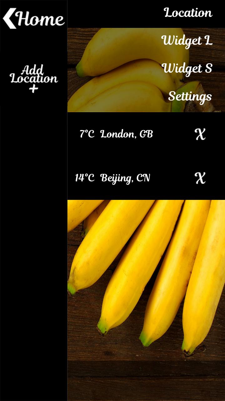 Si votre fruit préféré est la banane, vous allez certainement adorer le plus récent Banana Weather Widget ♦. Il est parfait pour les gens qui aiment les choses inhabituelles et votre smartphone et votre tablette auront l'air magnifique, c'est sûr. Osez être différent et décorer votre widget météo avec des bananes délicieuses qui semblent être là devant vous. Vous aurez le désir de tendre la main et de les saisir et ils enrichiront votre appareil avec des couleurs vives. Grâce à cette application populaire, vous saurez toujours à quoi il fait le temps et vous saurez quel type de vêtements à porter. Il n'est pas nécessaire que vous alliez à la fenêtre pour vérifier s'il fait froid ou non, un seul coup d'œil sur votre téléphone sera suffisant et vous saurez tout ce qui vous intéresse. Alors, n'attendez plus et téléchargez la meilleure application ♦ Banana Weather Widget ♦ dès que possible, totalement gratuite!