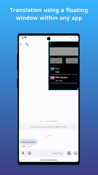 Traducteur utilisant la fenêtre flottante pour faciliter et vitesse de traduction et la possibilité d'utiliser un traducteur de fenêtre dans n'importe quelle application