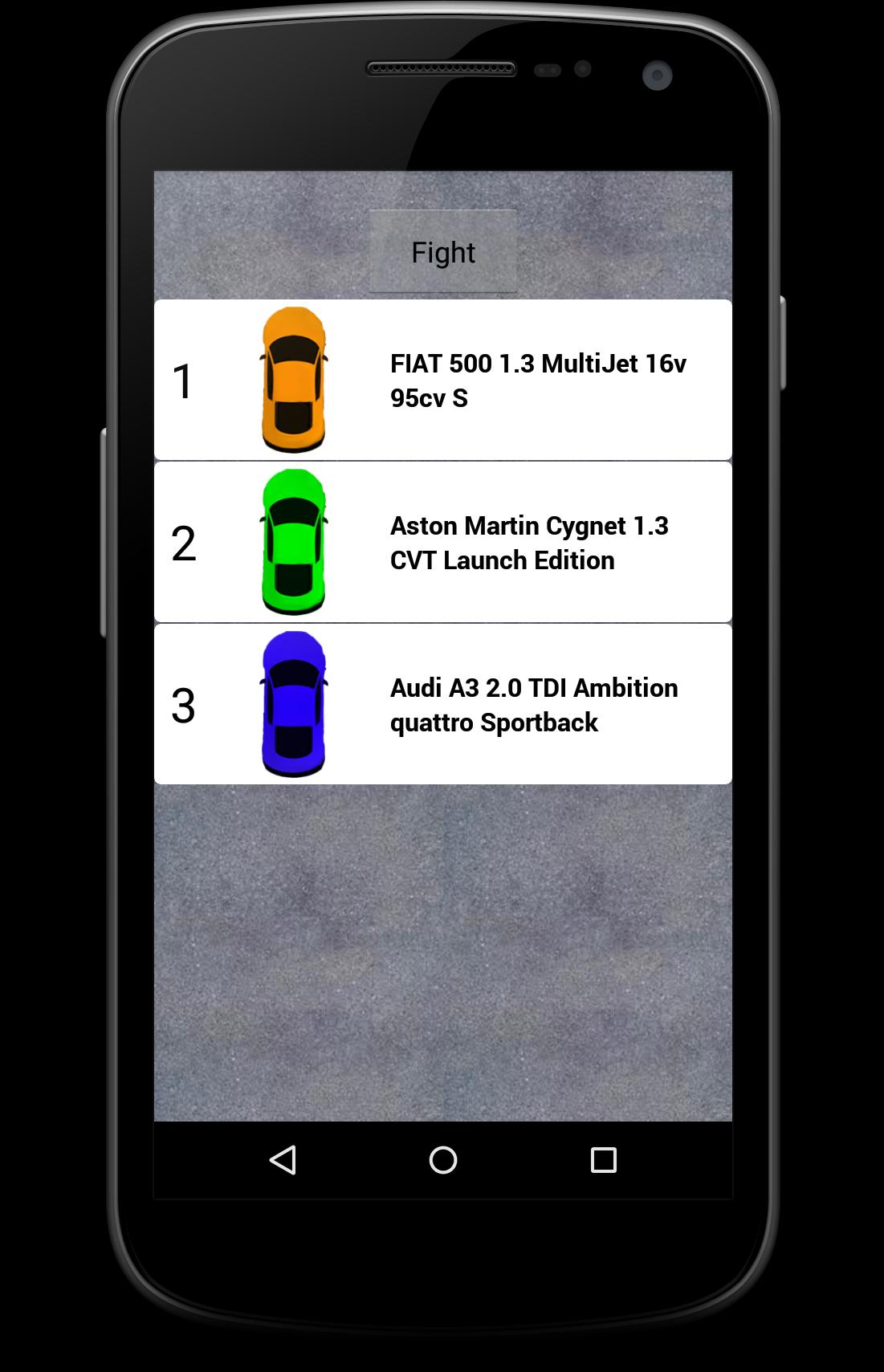 Car Fight vous permet de comparer 400 voitures et de les regarder courir. Vous pouvez comparer 2, 3 ou 4 voitures à temps et vous pouvez également partager le résultat. Comparez votre voiture avec la voiture de votre ami et amusez-vous.