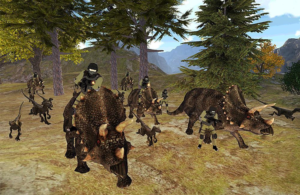 Prenez le contrôle de cet énorme dinosaure alors qu'il traçait les ours, les loups, les rapaces, les tricératops et le Tyrannosaurus Rex.