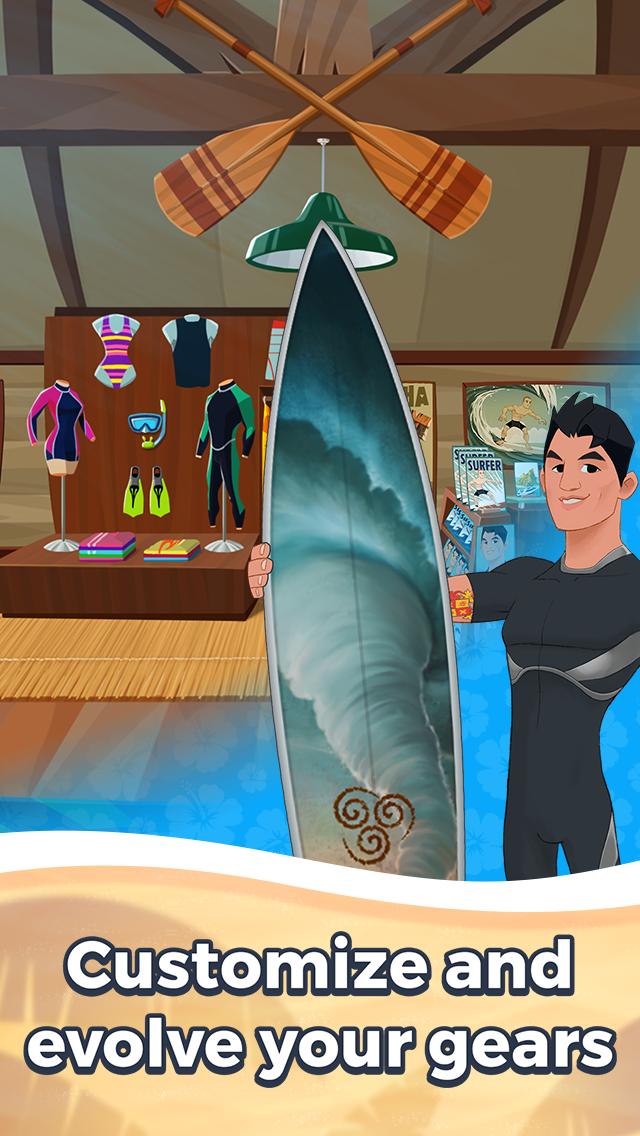 - Surf Store, où acquérir des planches, des costumes et des manœuvres pour améliorer vos performances.