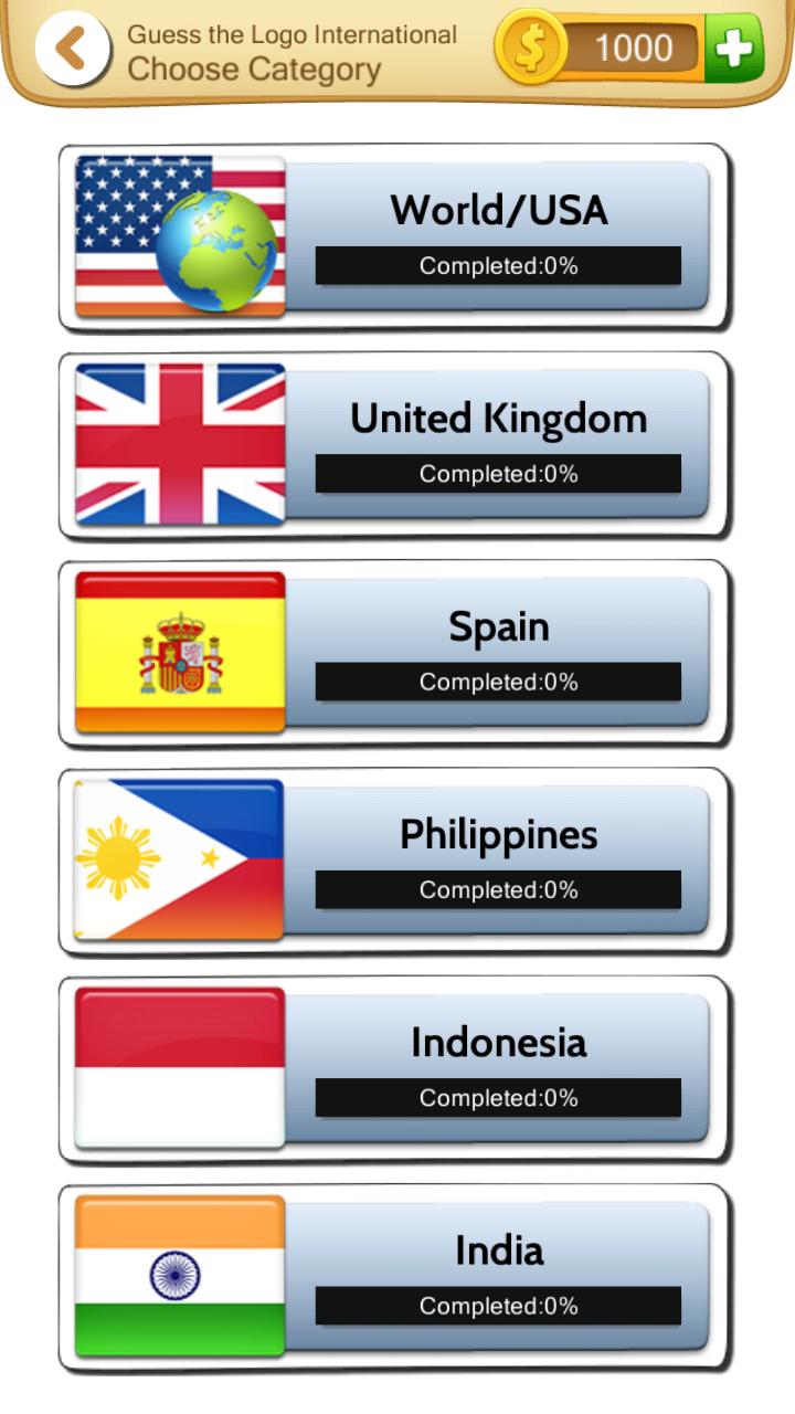 Guess the Logo International contient plus de 3000 logos organisés par différents pays: