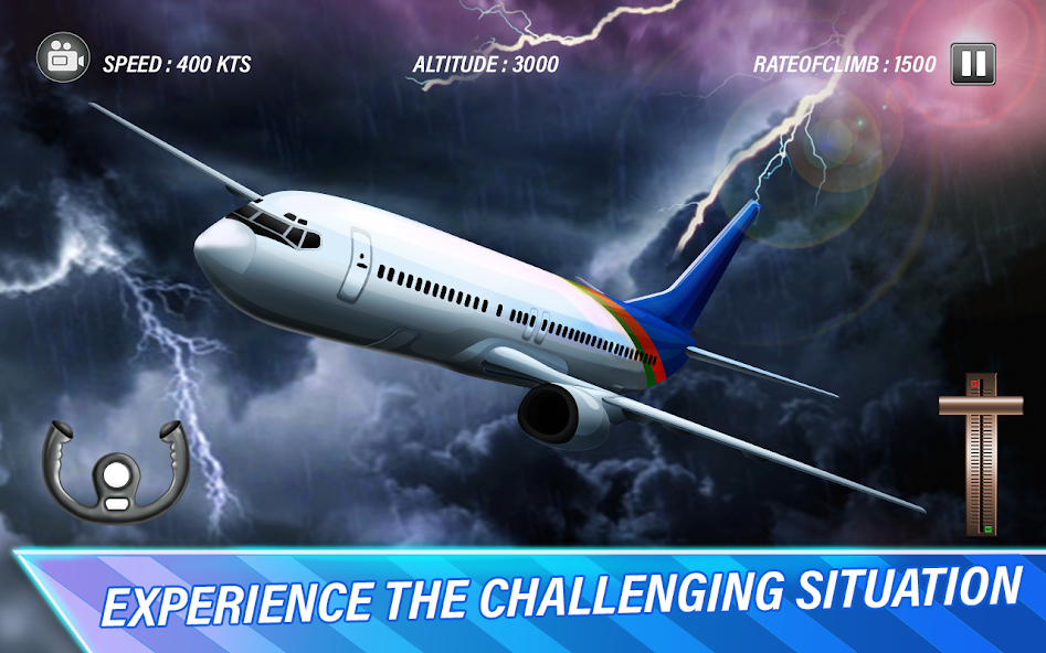 Avec des commandes réalistes du cockpit d'avion, vous contrôlez l'avion pour voler en toute sécurité dans les airs et aider à amener les passagers à destination à l'heure.