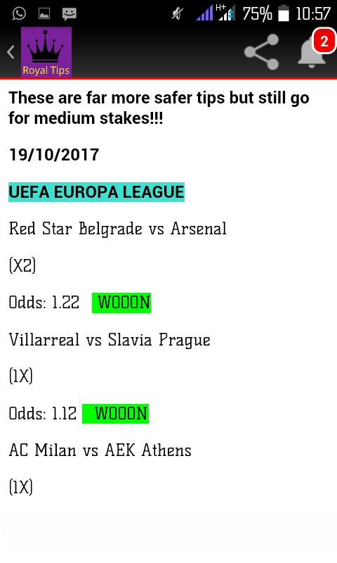 ROYAL TIPS donne des conseils beaucoup plus sûrs à parier sur la promesse de 5/7 par semaine. Les conseils seront affichés quotidiennement à 3+ GMT dans toutes les sections.