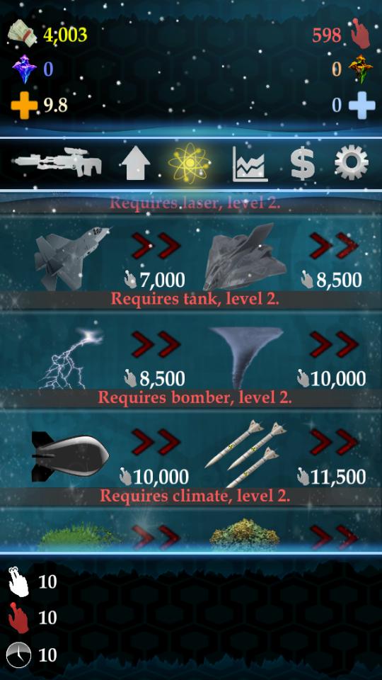 Ne degrez pas, ne vous arrêtez pas, ne rassemblez pas vos points et devenez le Seigneur de la guerre! Jeu simple, la signification est de rassembler des points en cliquant sur le panneau principal et en achetant différents types d'armes et des mises à niveau.