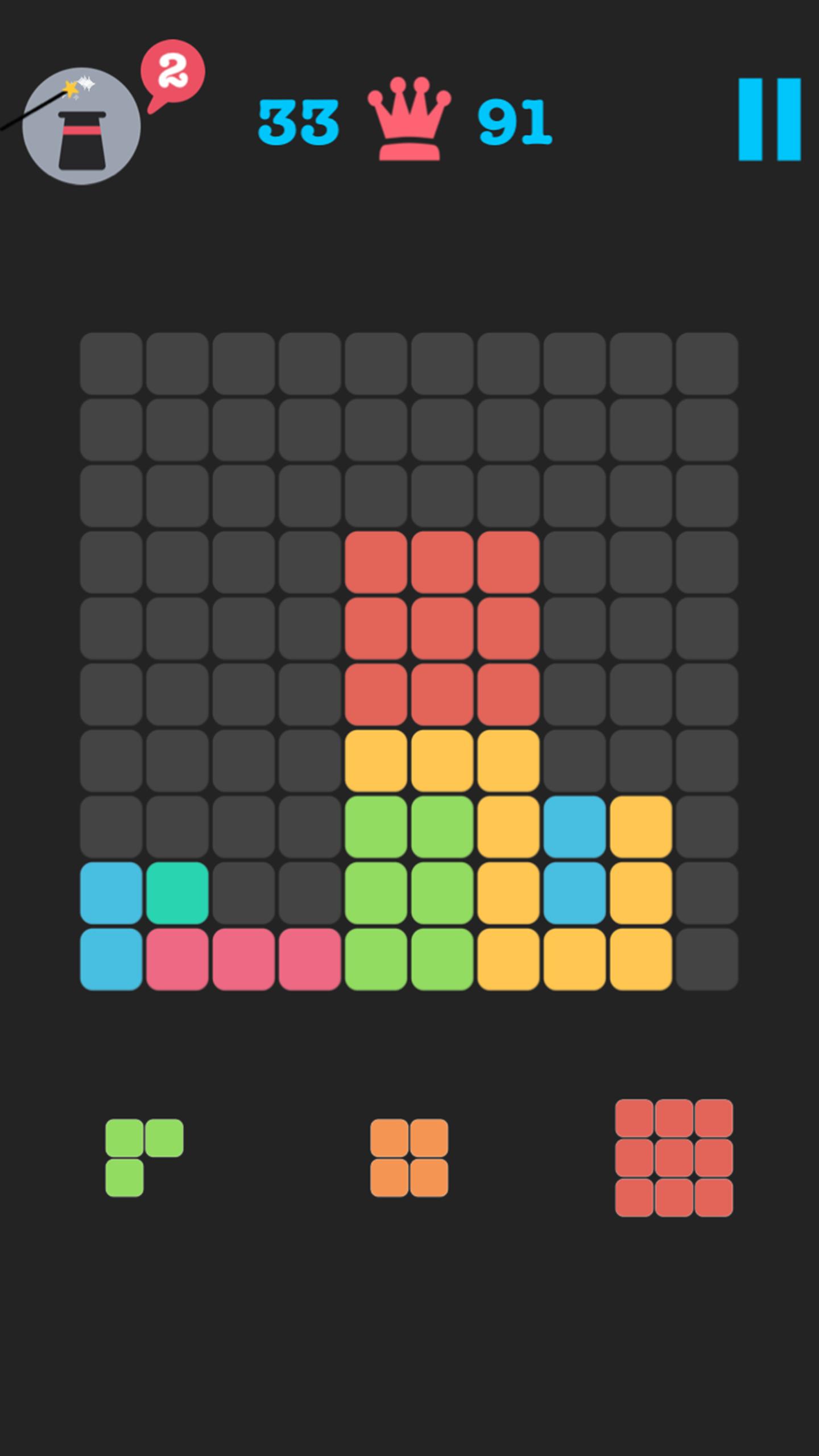 There is no time limit for gameplay, when you get tired of playing you can pause the game and then continue later where you left of! Fill all the grids with the matching blocks and enjoy 10x10 blocks game.