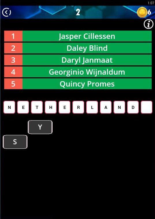 Every word clue consists of 5 football players, the challenge of your brain's is to get the answer of their correct country related to the 5 football players.