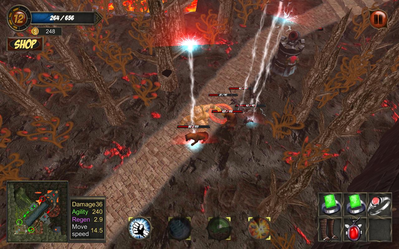 Village attacked by hordes of monsters with burning head demon. Allied mages caused you. Horrendous spirit of the earth! You use a fusion of power of heaven and earth. You son of the gods and you must to defend this miserable village from the enemy attacks. Otherwise they will not be able to survive themselves and fell under the onslaught of hordes. Destroy the crimson blood crystal