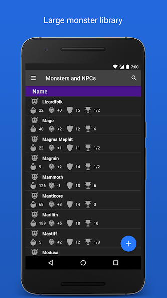 • Easily find and add multiple monsters and NPCs using the searchable list. Includes a large list of monsters from the D&D Systems Reference Document (SRD) to get you started with support for adding more.