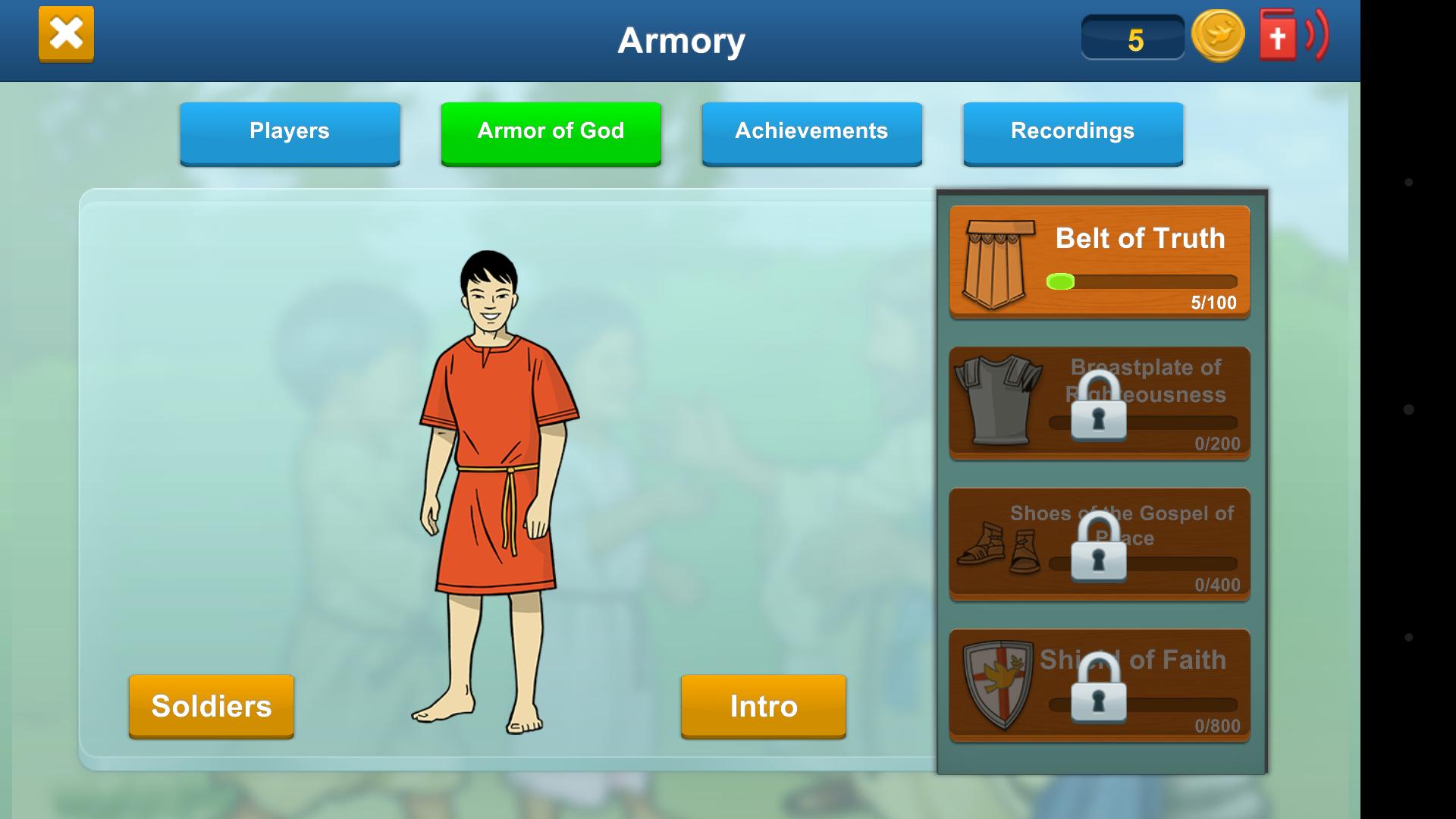 Finally a word for word Scripture App for children While listening to the Bible, your child can play games to earn their Armor of God, as they increase their knowledge of Scripture. Play “Find the Crosses” or build a puzzle to achieve the helmet of salvation, the shield of faith, or the belt of truth. Earn the breastplate of righteousness with other games such as Color Pages and Memory Verses. Your child can also record their own voice to share a story, memory verse or a color page through email. Imagine your child staying in touch with family and friends as they share the Word of God! Using beautifully illustrated stories, your child will enjoy learning the Bible! In addition to the stories your can use the Bible.is. KIDZ Radio Network during your family devotional time. LISTEN to the Bible, and SEE the Bible as never before. LISTEN. SEE. GROW. This app contains the following illustrated stories, with more to be added soon. Birth of Jesus Jesus is Baptized A Feast for 5000 Jesus Heals Blind Man Jesus Enters Jerusalem Crucifixion An Empty Tomb Powered by the ministry of Faith Comes By Hearing in partnership with Child Evangelism Fellowship.