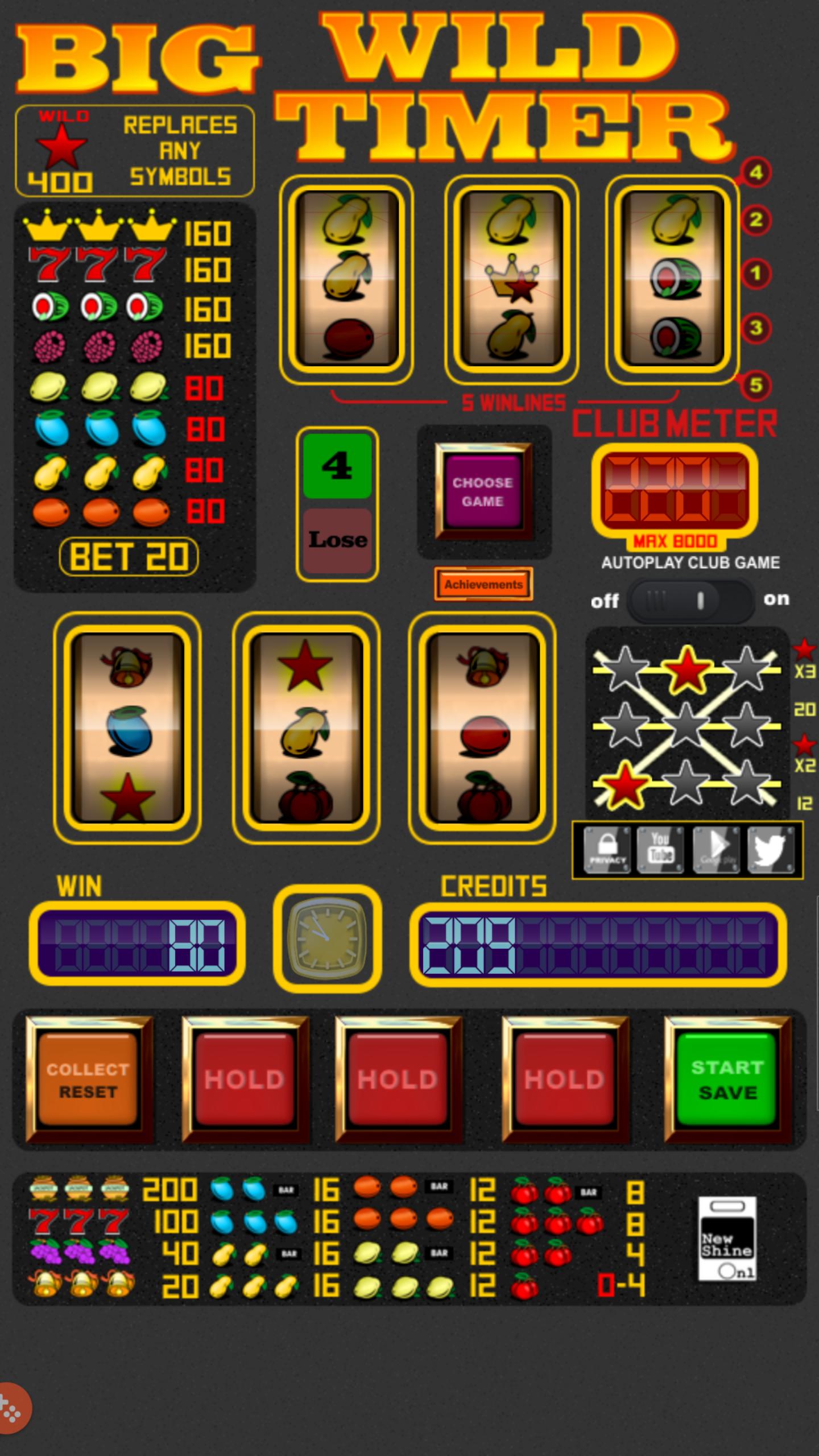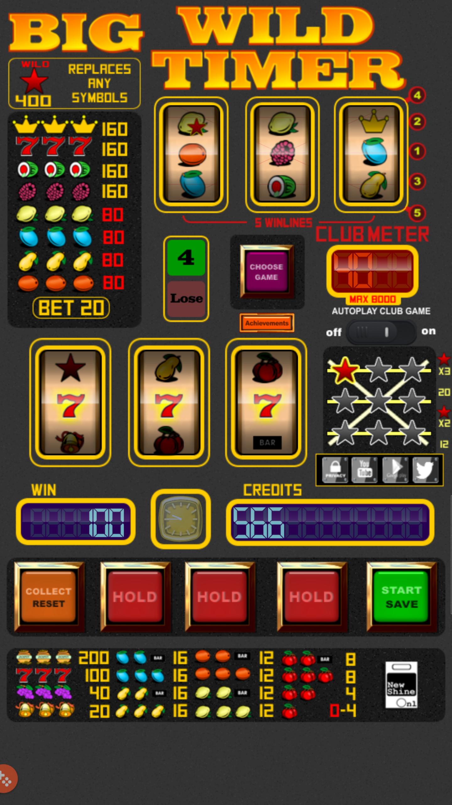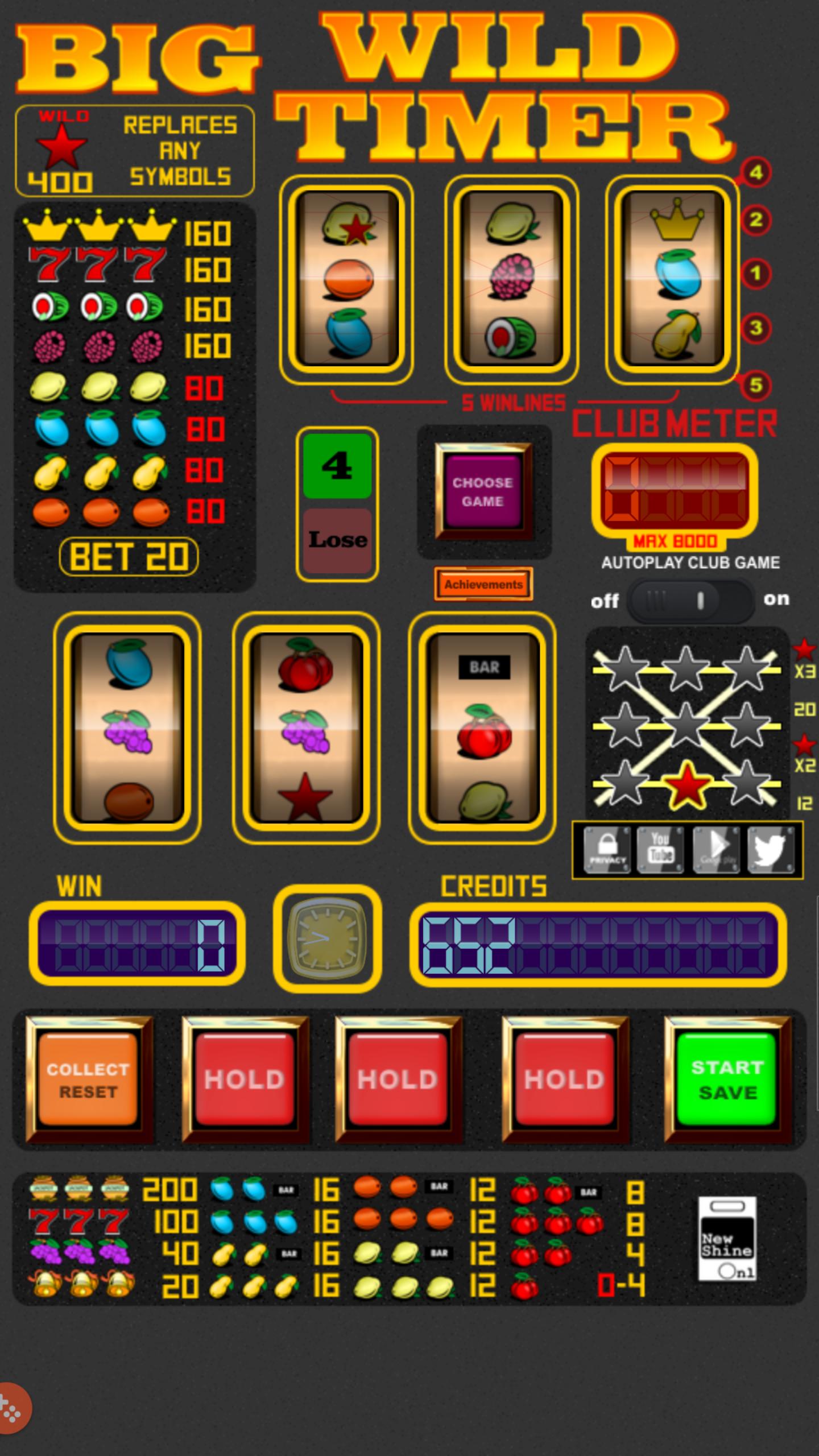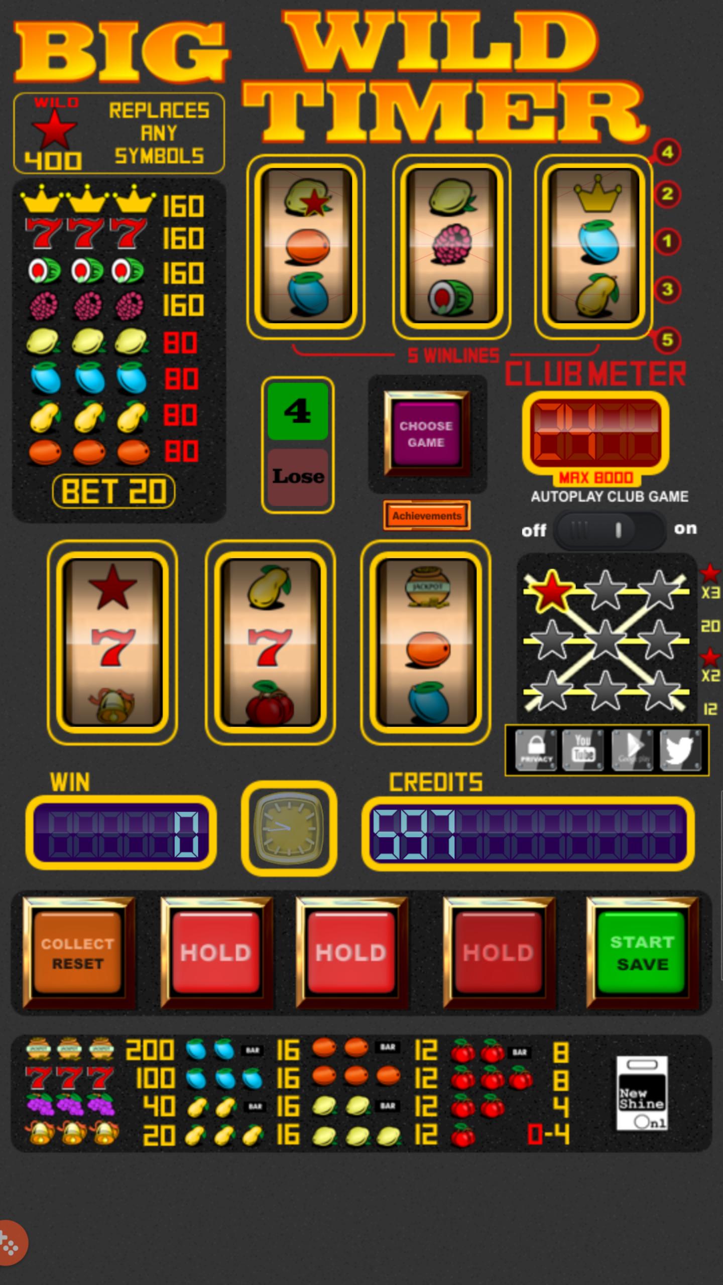Spin the reels of the slots on the lower game to earn points so you can play on the upper game on 5 winlines the STARS are WILD when you play max so prices will drop on this amazing slot / fruit machine.