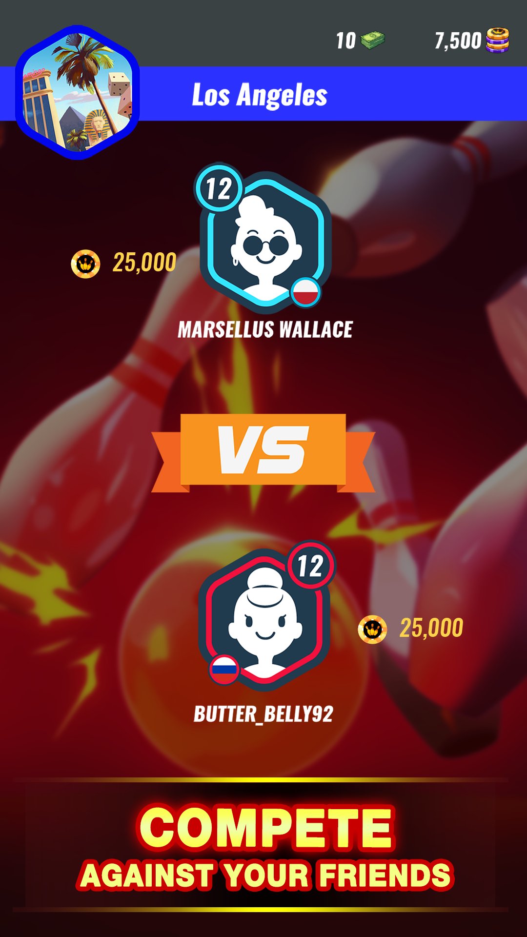 * Customize your bowling ball and make your opponents jealous!