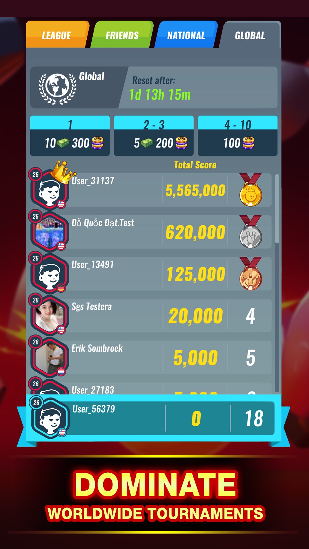 Use the earned cash to place bets on matches. Play bowling games against real players to win the pool. Experience real sports emotions as you use your skills to hit as many strikes as you can.