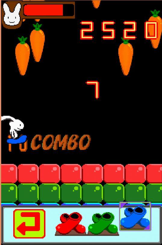 If you change the color of your shoes at the right time and erase blocks in succession, your combo will increase your score!
