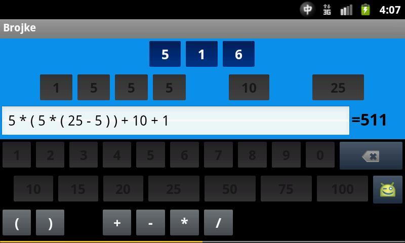 "Number and letters" ("Numbers and Letters") is a croatian version of ex-yu Plje Game with the Sama Name. As the title of the Game Indicates, it is a based on two skills: numeracy rounds and letters rounds. In the first game the Player Gets Six Randdomy Chosen Numbers and Have to Combine The Numbers with Basic Arithmetic Operations with the Goal of Production The Target Number. In second game the Goal is to find the longest Word vacling the available Letters.