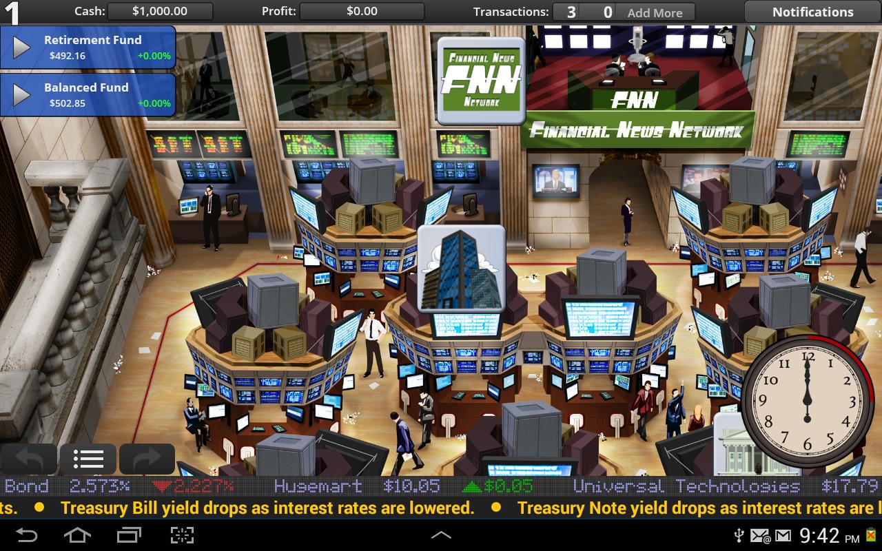 • Buy and sell 15 different stocks, bonds, and commodities with more to be added soon.