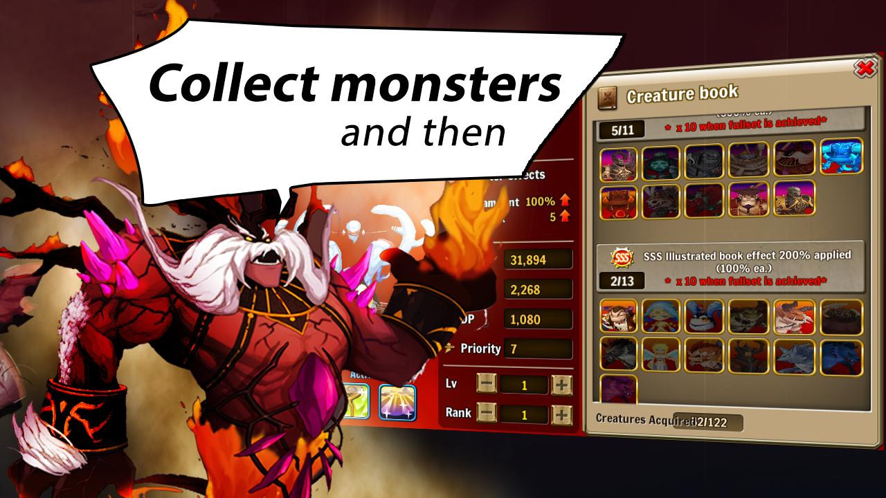 • Make 3 monster team and fight in PVP Arena with worldwide users