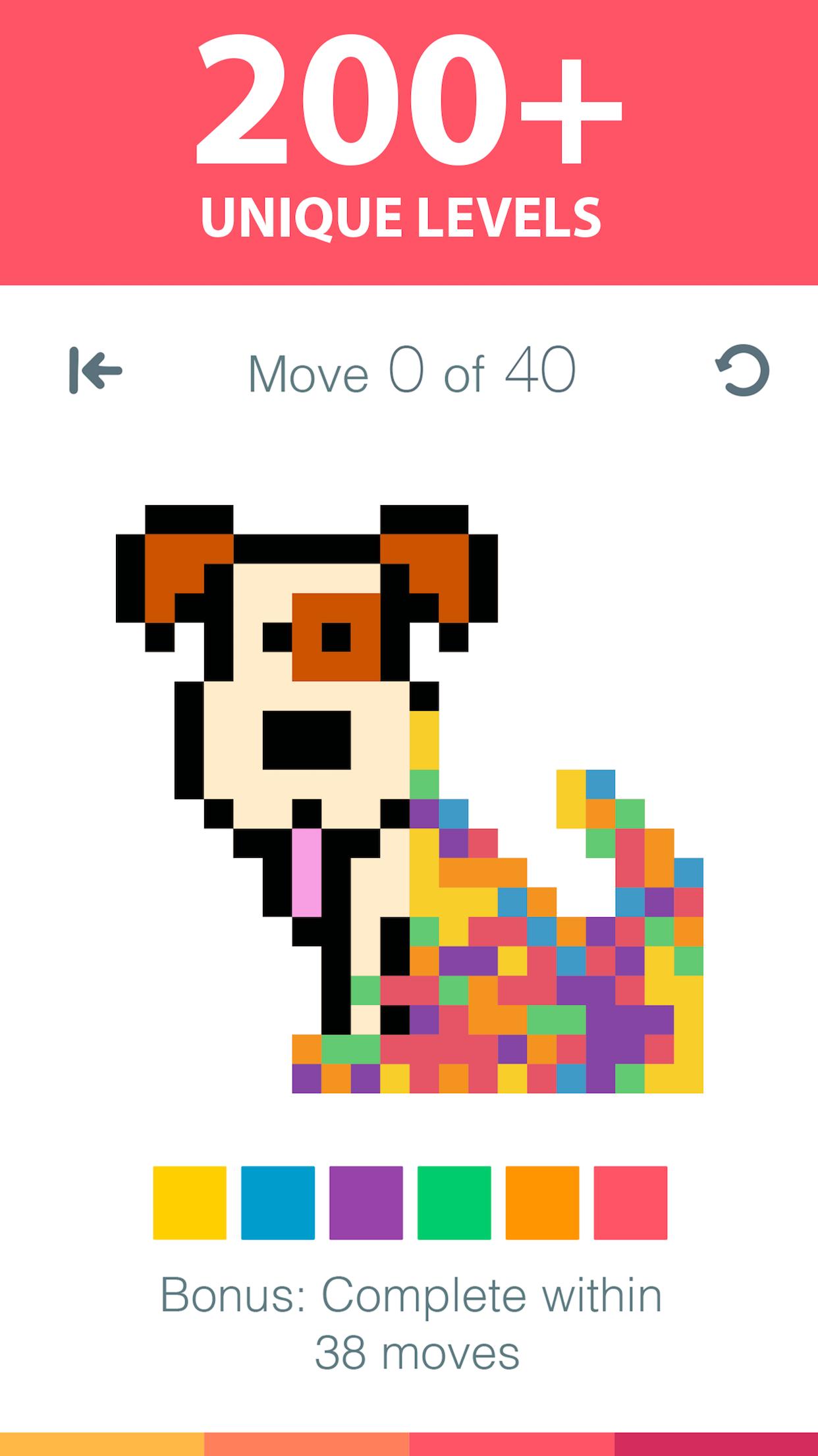 The goal is simple – to paint the whole game board with one colour in given moves. Red, Orange, Yellow, Green, Blue or Violet . Think twice, and choose the correct one that will enable you to pass the level without exceeding maximum moves.