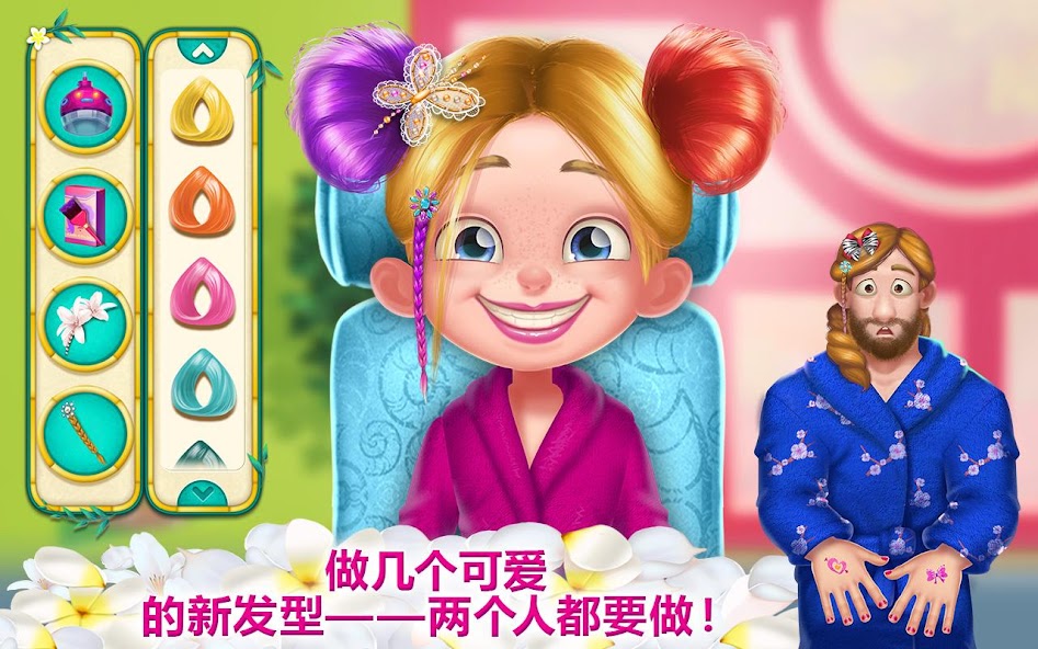 It’s your job to make sure Jessica’s makeover adventure birthday is amazing… and that Daddy doesn’t quit in the middle! He’s the manliest of men, and he is not used to spa days. Get soothing spa treatments, including a mani pedi, facial, and more! Even Daddy will get his nails done! Getting pampered at the spa has never been so fun!