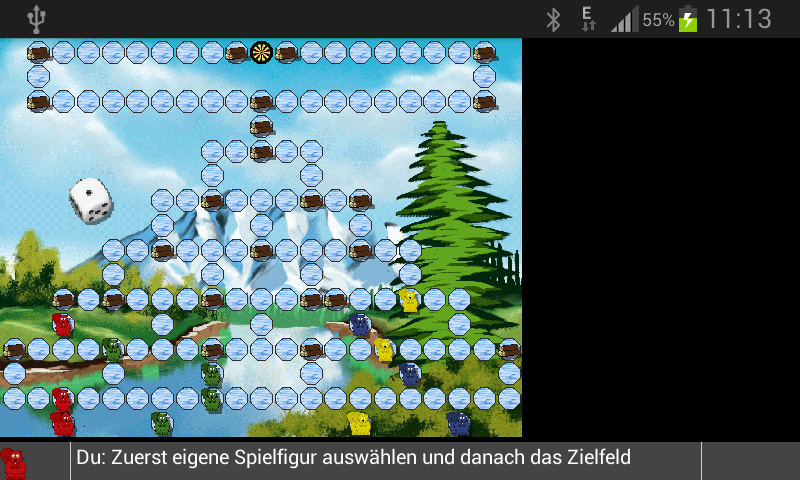 Barriers in the middle of the way will block the cap of the player in the according direction. It is also not possible that two or more caps are placed on the same field. If it is not possible to do any move with the current value of the dice, the next player will do his move.