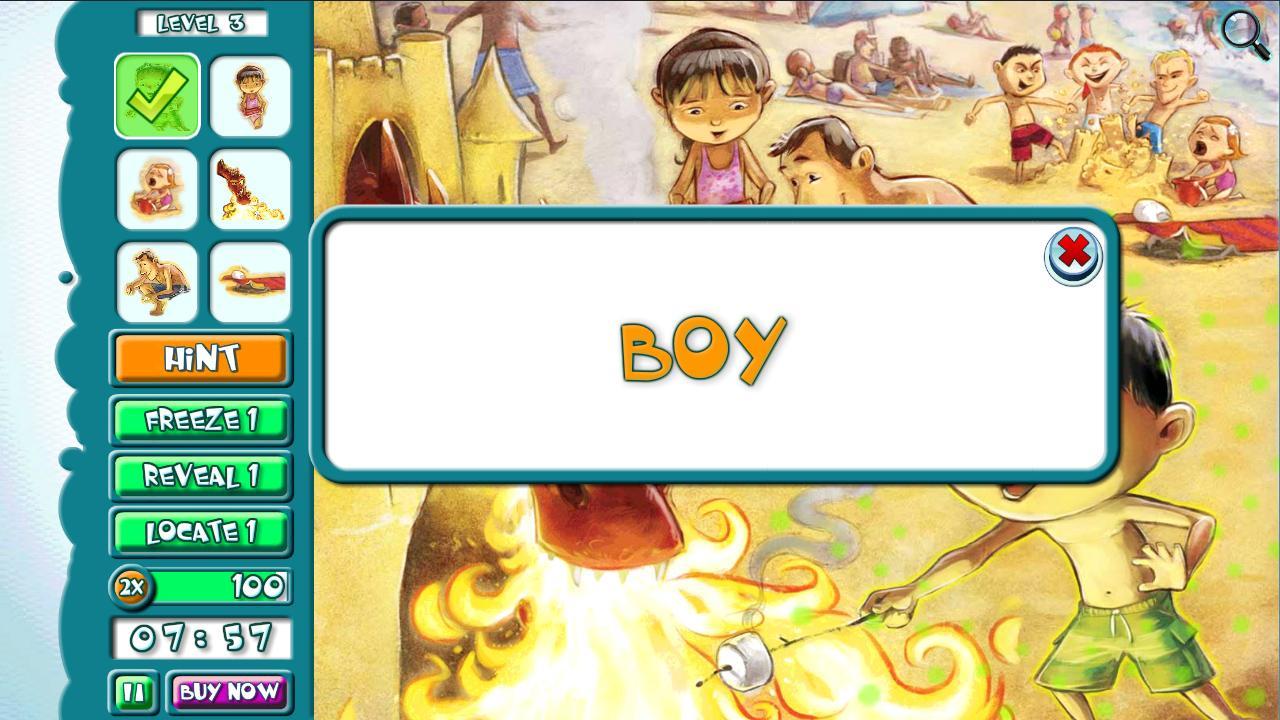 A boy on the beach plays with his dragon; but mom, dad and sister don't believe him when he tells them about the dragon. Is the dragon for real or is the boy's imagination running wild? Discover for yourself by finding the hidden objects in this wonderfully illustrated hidden object game!