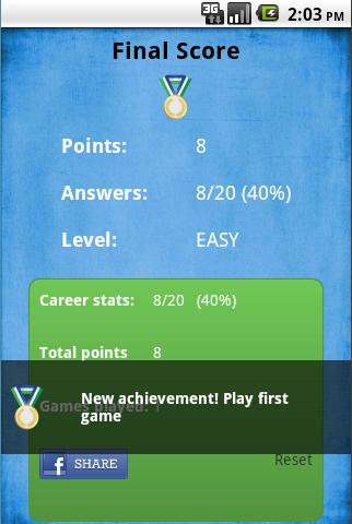 A Quiz Game for one or two players, with questions about European basketball championships. Every round can have 20,25, or 30 question with different time limit. It has three difficulty levels. There are questions about Eurobasketball championships history (year, host countries, winners and losers,...), teams (medals, players,...) and players (teams, positions,teammates,...)