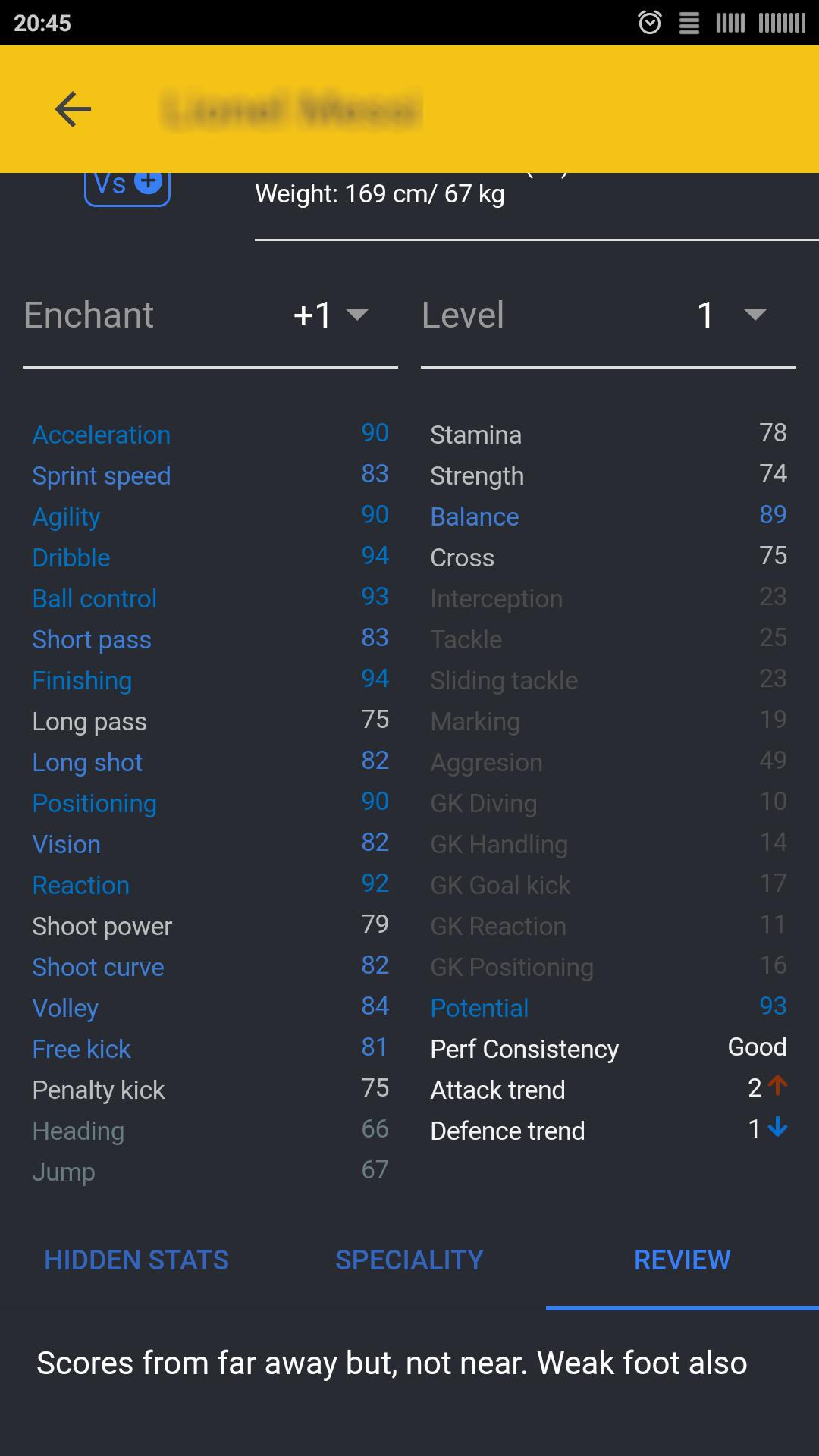 - View attributes, speciality, traits of player