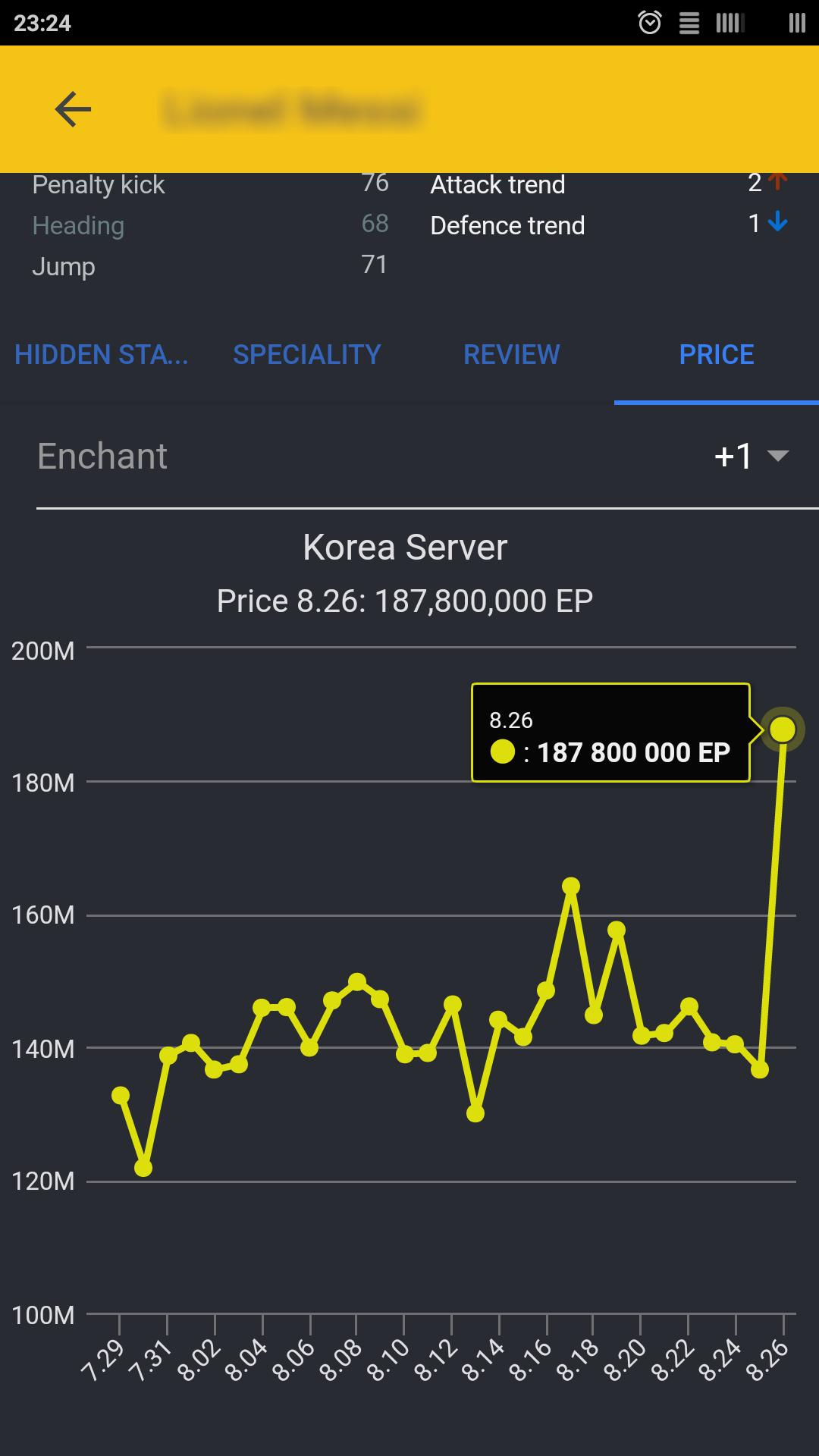 - View update to date price of player