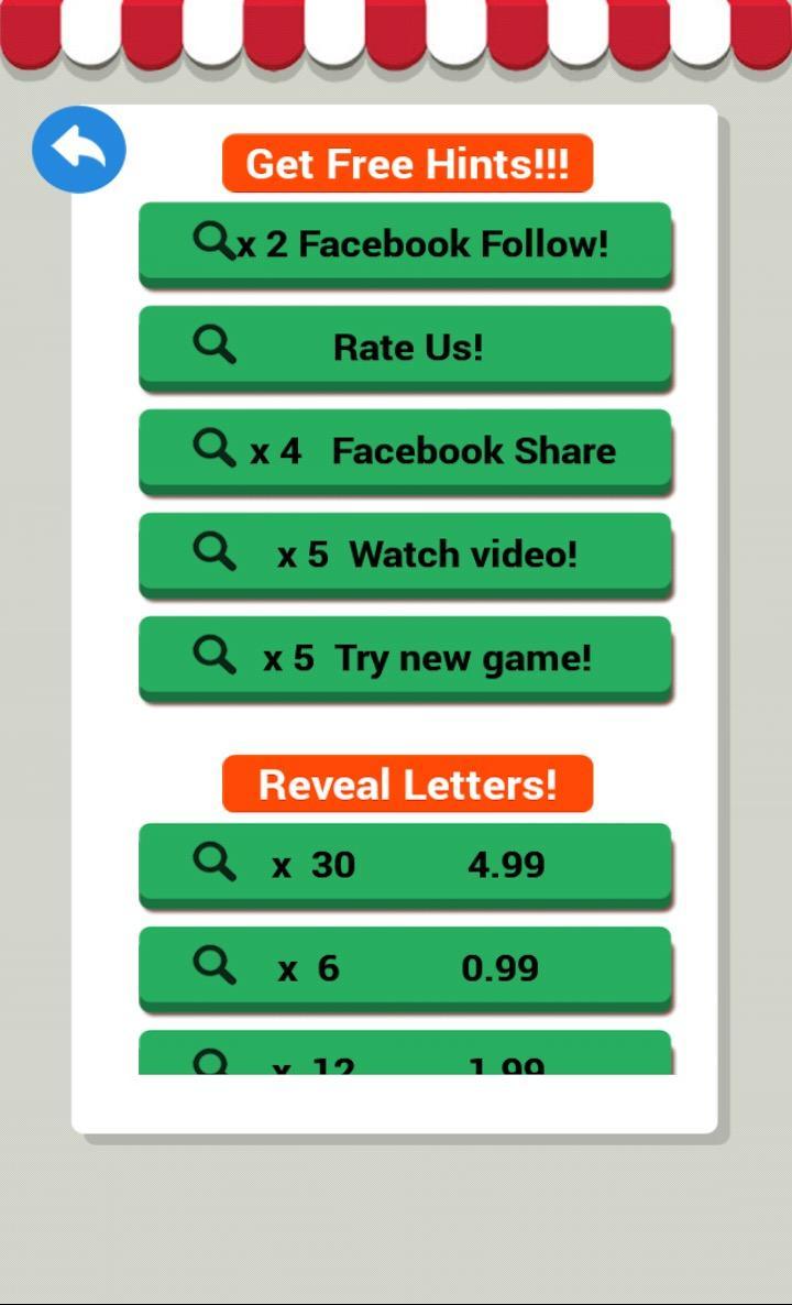 Logo quiz food games for free: Easy food quiz has hundreds of puzzles for you to test your restaurant brand icons knowledge. Look at the logo and guess the word of it, Guess the logo. Get stuck? Don't worry, we give hints to help you to solve the pic puzzle you can't figure out. The “Reveal Letter” displays the right letter for you! And you also can get the answer and go to the next puzzle directly by using the Reveal the Answer function, new function added if you want to get more free hints, please rate us, Food quiz games free - Resturant app