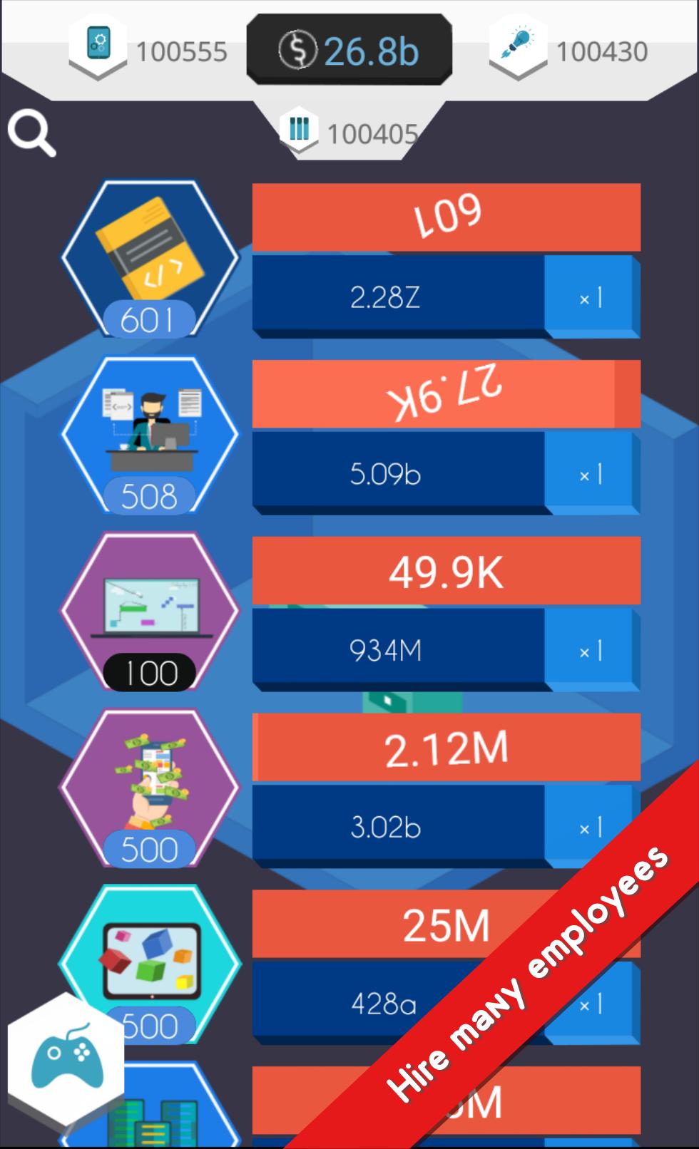 Manage your studio, hire managers to automate your production, buy boosts to increase your income.