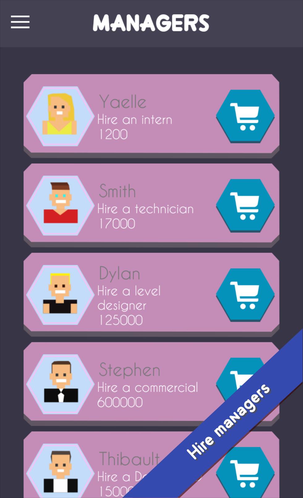 You can realize your dreams, create : an indie game studio. Start as an indie dev who works in his garage and reach the top of the video game studio industry.