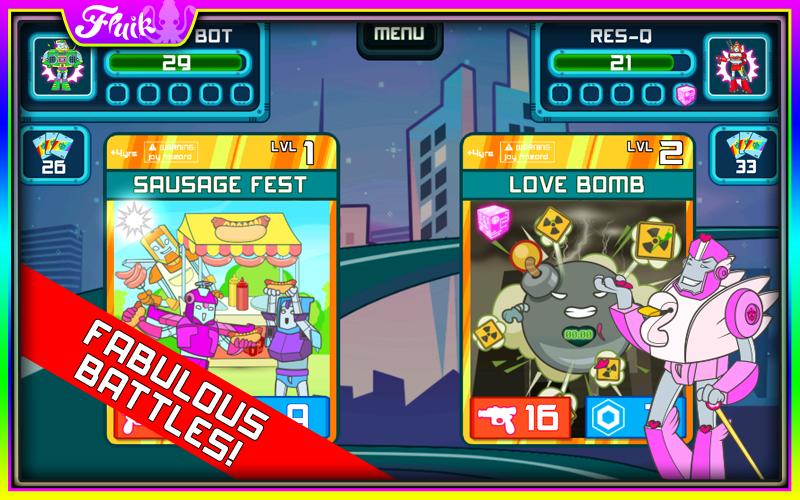 GayBots is a simple turn-based card game that allows the player to fuse two of their GayBot cards into a single more powerful card, dealing damage to their opponent. With more than fifty different combinations at your disposal, the GayBots can combine into a multitude of friendly props and situations.