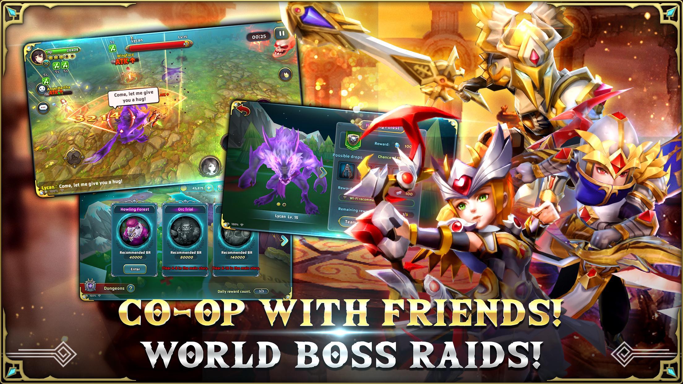 Heroes need friends too and some enemies are just too tough to handle alone (or it is just more fun to send them to oblivion with the company of other heroes). Co-op dungeons allow you to battle with friends and other guardians in real-time for rare rewards and resources!