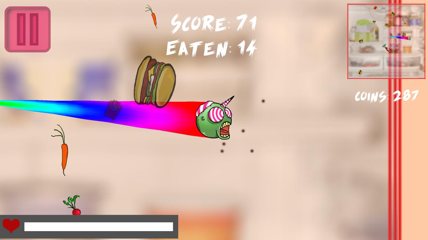 Healthy Food is game where you are a crazy zombie whose aim is to eat junk food, collect coins, beat highscores, and survive as long as he can. In the game you can buy a lot of things for coins which you collect during gameplay.