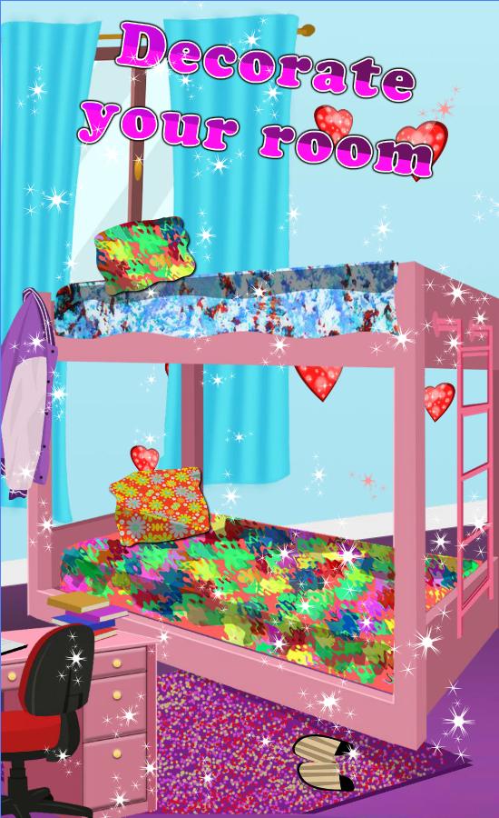 In our decorating games for girls you will find a lot of stuff that you can use to test your decorating skills : the blanket, the pillows, the toys - each girl has a favorite toy, isn't it ? You may even change the color of the walls, the carpet or the curtains. All you have to do is to choose your favorite color for all these room decoration objects and change them as you like. Do not forget the balloons or the cheerleader stuff which are very important for a college girl !