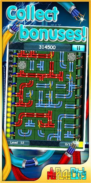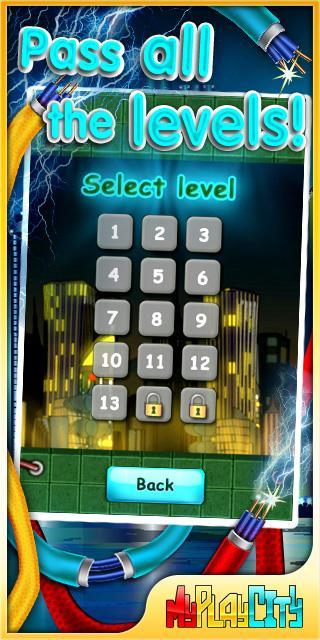 With the help of the logic iWiring game you can acquire the super agent's power! Just think of that very thrilling moment when the hero disconnects with great effort (or even bites off) the wires led to the bomb and triumphantly saves the humanity! While playing this brain teaser you are to rotate the tiles with the wires' pieces. Be attentive – your unbroken line should reach the opposite side of the game field. And you get the desired electricity! The line you've just created is vanished and brings you precious points. If you connect several lines you receive additional combo bonuses for your logic thinking. But don't forget about time! The indicators on the left show you the limit of it. If all the buttons are lighted the game is over. The difficulty predictably increases as you pass new levels and as far as it's the logic game you'd better make decisions fast. Moreover, on higher levels you deal with the blocked tiles which you can't rotate – just adjust the neighbouring tiles or… find another way out! Use your logic to win!