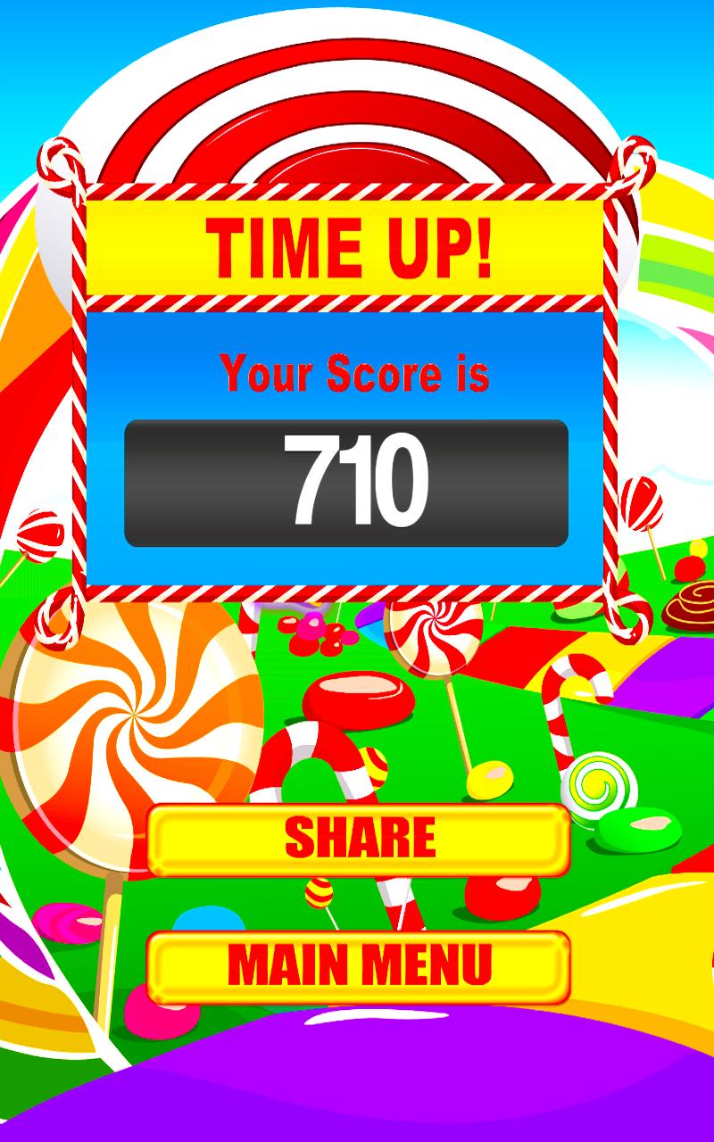 • Swipe, tap, and combinedifferent candy objects in a 60 seconds rounds – Time Attack
