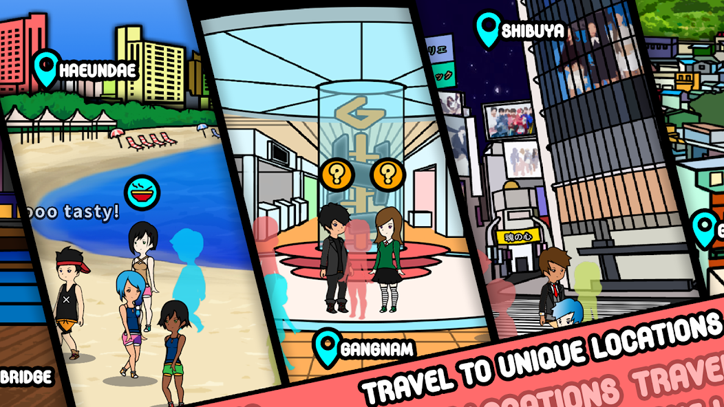 Travel to 16 unique locations in Korea in your search for the greatest idols. Each location has its own flavor, quirky characters, and varied clothing styles.